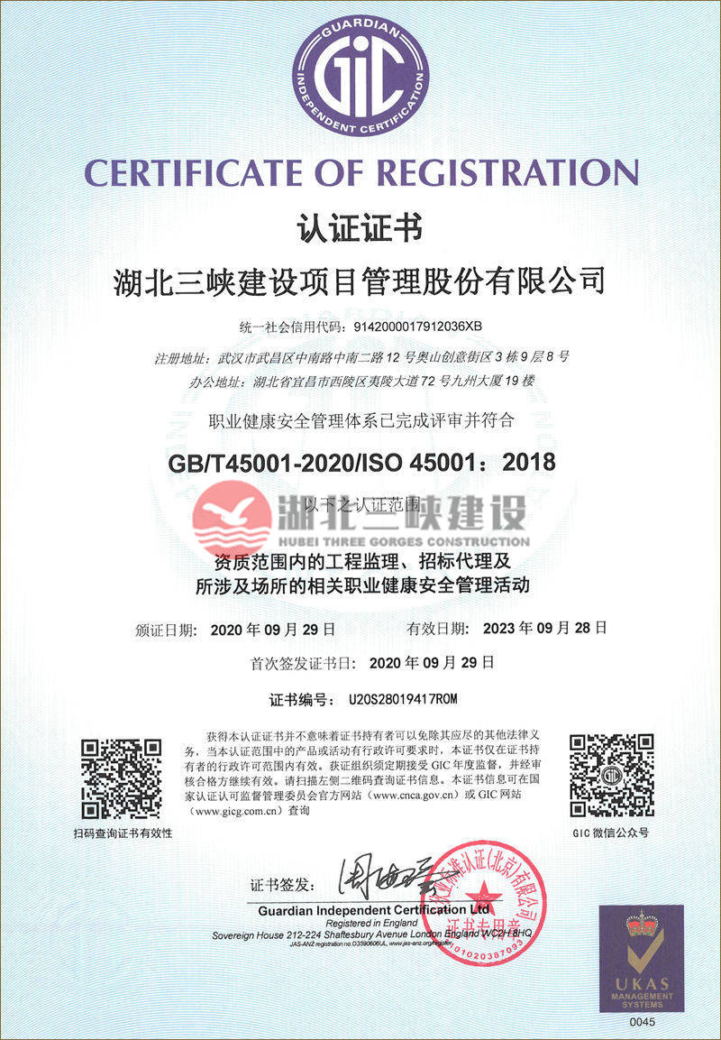 職業(yè)健康安全管理體系認(rèn)證證書