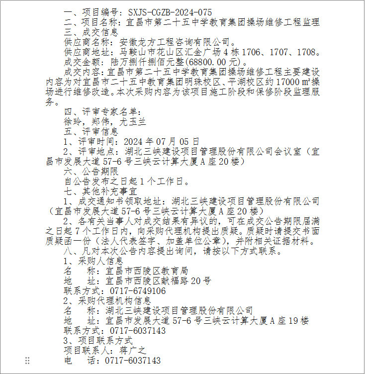 | 宜昌市第二十五中學(xué)教育集團(tuán)操場(chǎng)維修工程監(jiān)理成交公告 |