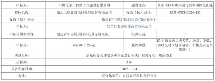 | 地建青年安居項(xiàng)目家具家電招標(biāo)項(xiàng)目中標(biāo)結(jié)果公告 |