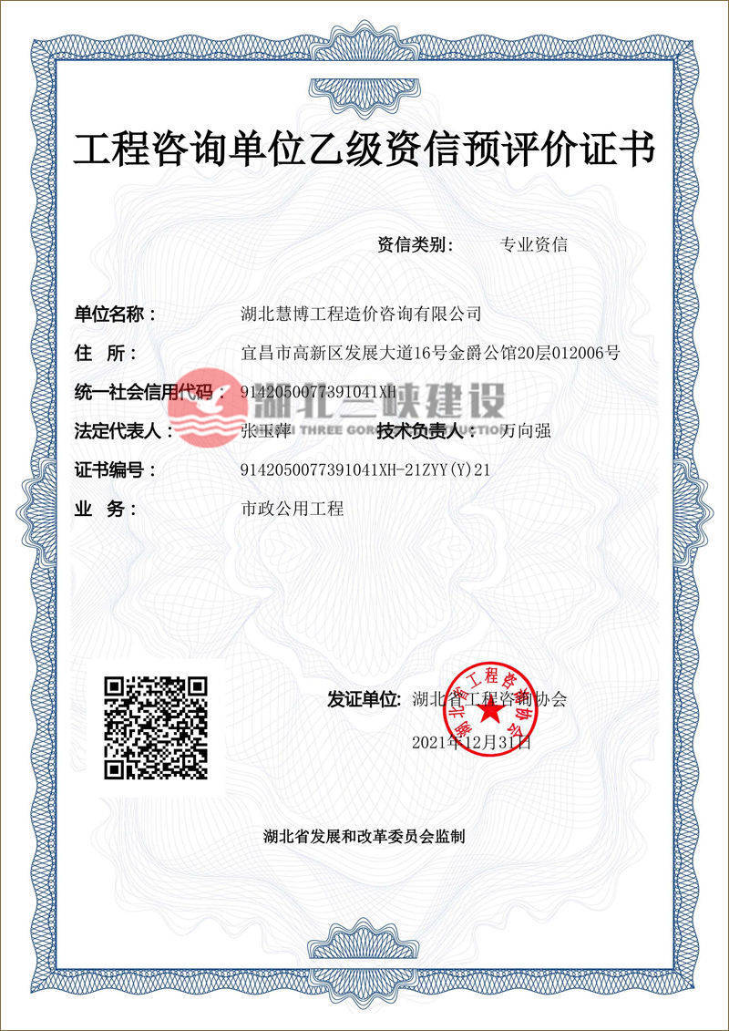 工程咨詢單位乙級資信預(yù)評價(jià)證書