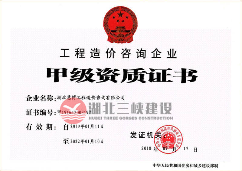 | 工程造價(jià)咨詢企業(yè)甲級(jí)資質(zhì)證書 |