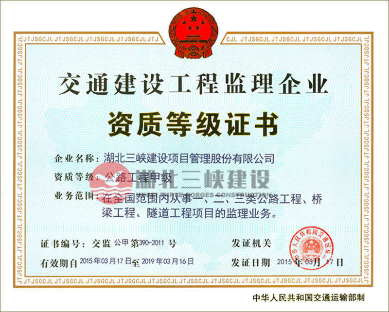 | 交通建設(shè)工程監(jiān)理企業(yè)資質(zhì)等級證書 |