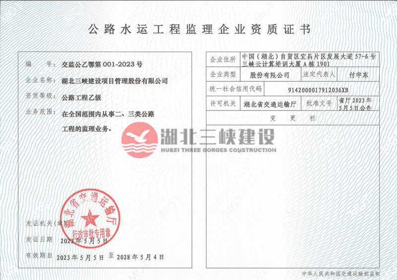 | 公路工程監(jiān)理企業(yè)資質(zhì)證書(shū) |