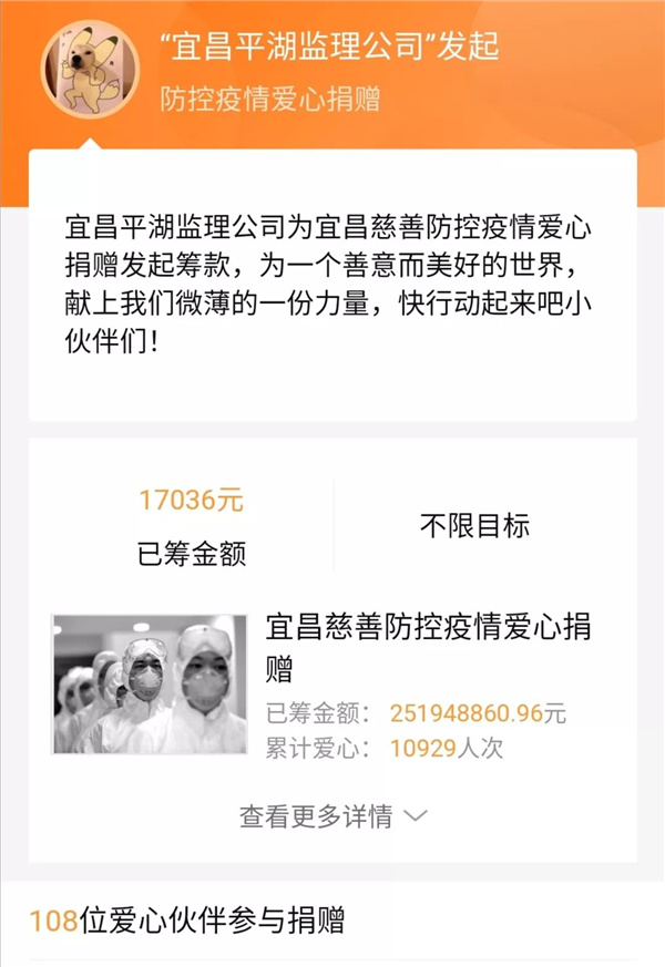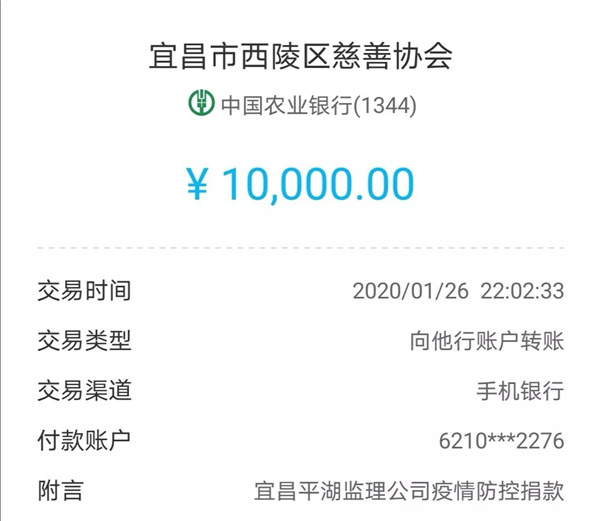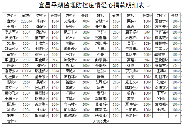 突發(fā)的新型冠狀病毒感染肺炎疫情牽動(dòng)著黨中央和全國(guó)人民的心,全國(guó)各地已啟動(dòng)突發(fā)公共衛(wèi)生事件Ⅰ級(jí)響應(yīng),各部門(mén)、各行業(yè)積極行動(dòng),投身到抗擊疫情的第一線。團(tuán)結(jié)一心、眾志成城,堅(jiān)定不移打贏這場(chǎng)無(wú)硝煙的抗疫之戰(zhàn),已全面進(jìn)入決戰(zhàn)時(shí)段。 春風(fēng)楊柳萬(wàn)千條,六億神州盡舜堯”,抗擊疫情平湖有責(zé)。我們雖不是白衣天使,不能做到義無(wú)反顧奔赴前線抗擊疫情,但我們能夠情系前線,獻(xiàn)出我們的一份愛(ài)。公司黨支部號(hào)召全體員工弘揚(yáng)守望相助精神,積極行動(dòng)捐款援助,用善舉彰顯平湖監(jiān)理人的責(zé)任擔(dān)當(dāng),同呼吸、共命運(yùn)、心連心,為決勝疫情做出積極的貢獻(xiàn)! 由于疫情嚴(yán)重,公司取消節(jié)后面簽報(bào)到,用愛(ài)國(guó)捐款的方式,在堅(jiān)定支持抗擊疫情中報(bào)到。以信念備戰(zhàn),用愛(ài)心參與,為勝利助力! 2月8日我公司黨支部發(fā)起的愛(ài)心捐款,短短3個(gè)小時(shí),108位同事踴躍參與,奉獻(xiàn)善款17036元。加上公司總經(jīng)理1月26日捐款10000元、1月28日捐款10000元,我公司參與抗疫共計(jì)捐助37036元。愛(ài)心還將持續(xù)。