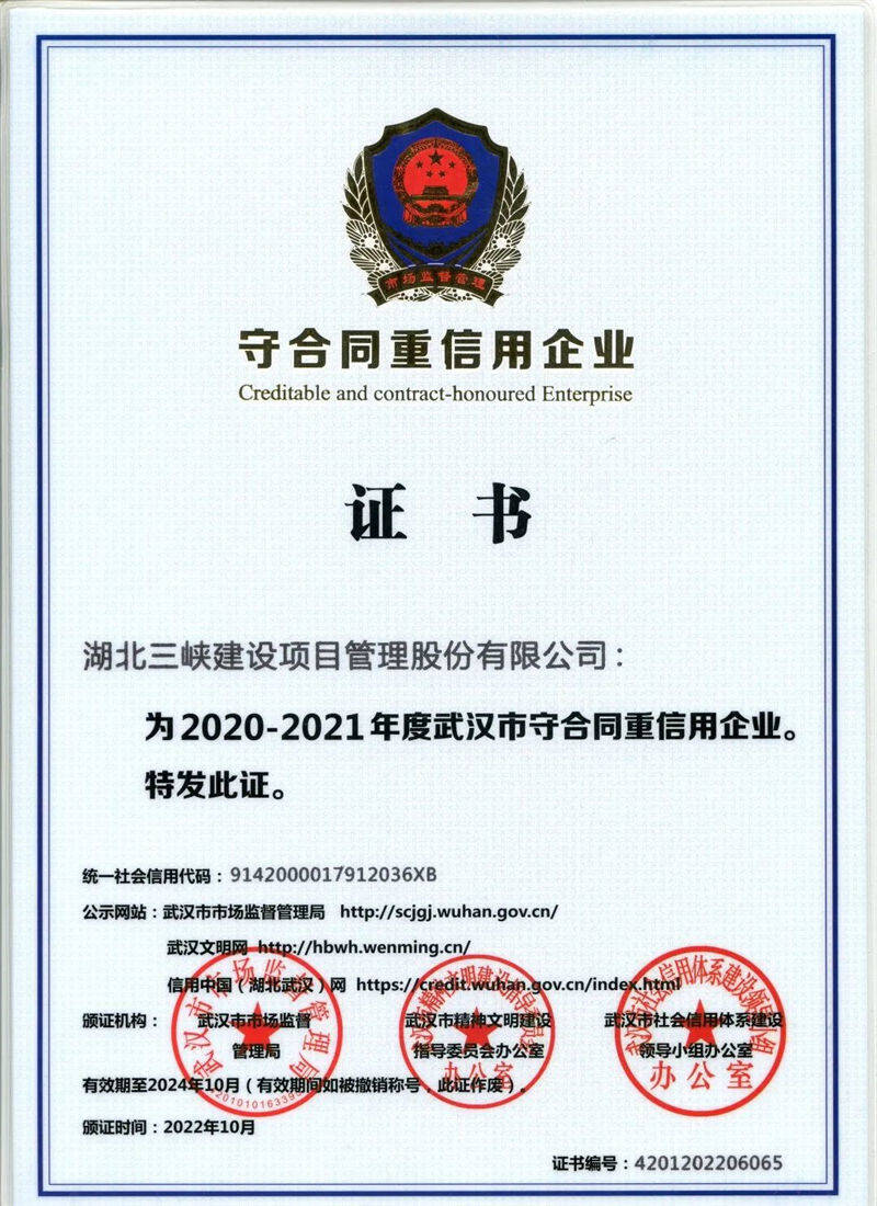 近四十年以來(lái),三峽建設(shè)人恪守“科學(xué)、公正、誠(chéng)信、開拓”的經(jīng)營(yíng)宗旨,秉持“通過(guò)過(guò)程控制實(shí)現(xiàn)投資價(jià)值最優(yōu)化”的增值理念,踐行“讓業(yè)主滿意、為社會(huì)盡責(zé)、使自己安心”服務(wù)原則,著力打造“具有增值服務(wù)價(jià)值和社會(huì)公信力”的工程建設(shè)全過(guò)程管理咨詢企業(yè),努力為客戶提供更精準(zhǔn)的技術(shù)管理服務(wù),努力為員工創(chuàng)造更美好的人生平臺(tái),努力為社會(huì)回饋更有益的正能量,廣泛得到項(xiàng)目業(yè)主和建設(shè)行政管理部門的高度信任和支持。公司連續(xù)連續(xù)二十年獲湖北省先進(jìn)監(jiān)理企業(yè)及湖北省守合同重信用企業(yè),被中國(guó)建設(shè)監(jiān)理協(xié)會(huì)、中國(guó)建設(shè)工程造價(jià)管理協(xié)會(huì)評(píng)價(jià)為“AAA”信用等級(jí),被湖北省招投標(biāo)協(xié)會(huì)評(píng)價(jià)為“AAA”信用等級(jí),被湖北省認(rèn)定為高新技術(shù)企業(yè),公司黨支部被中共宜昌市西陵區(qū)委授予優(yōu)秀基層黨組織榮譽(yù)稱號(hào)。
